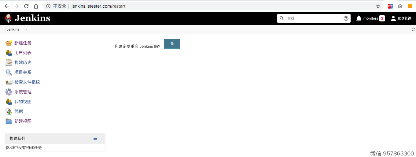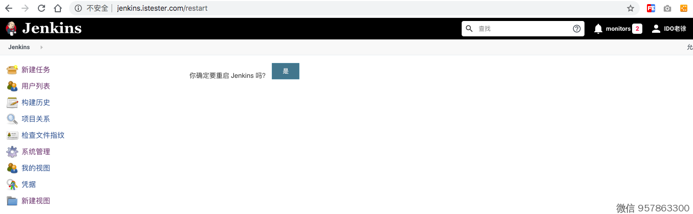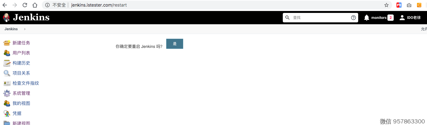 2)执行了第一步,服务关闭后,启动,见之前的安装文档 http://istester.com/jenkins/402.html